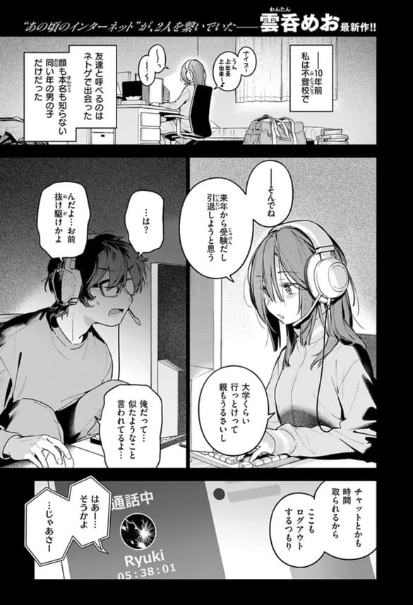 あの頃のインターネットは、居場所や友達とのつながりが唯一の心の安らぎだった。ネトゲ内で知り合った異性の友達、将来への不安や焦り、諦めきれない想いが入り混じる中で、自分なりの青春を過ごしてきた。突然のサービス終了の知らせに、懐かしい通話アプリを開いたところ、そこには未送信のメッセージや、久しぶりの匿名チャットが残されていた。過去を振り返れば、ネット上で淡い恋や恥ずかしい思い出も泡のように消えたはずだったが、不意に告白されてしまった。相手は会ったこともないはずなのに、「好きでした」「自撮り画像で抜いた」など、唐突なメッセージが次々と届く。躊躇いながらも、何故か会ってみる気になった自分がいる。長い期間、秘密にしていた思い出と未練が、再び動き出す瞬間だった。